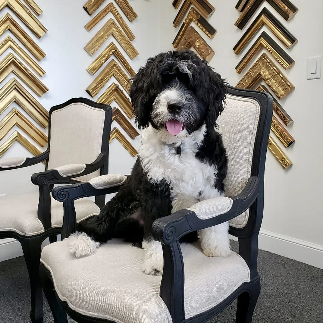 Cappy is the goodest boy and a fan favorite at The Gilt Complex! He’s a laid back Portuguese Water Dog who enjoys long walks in the downtown Stuart neighborhood, watching other pups stroll by the showroom, and playing with his sister, Daphne. And did you know about “Cappy Hour”?! Stop by any time during normal business hours just to say hi and give this little boy some pets!