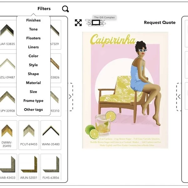 From there you can instantly explore different frame and mat options based on style, size, color and finish.